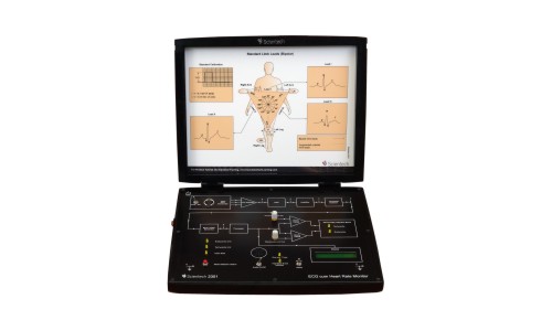 Scientech’s comprehensive range reflects the most recent and innovative teaching technology in the market. Creation like Heart-rate monitor cum ECG Scientech Techbook 2351 gives in-depth study of Electrocardiogram, ECG standard leads configuration, and the measurement of heart-rate i.e. number of ECG pulses (heartbeats) per minute. Scientech Techbook 2351 enables the Electrocardiogram observation by affixing Biomedical Electrodes to the human body in standard bipolar leads configuration. The Heart-rate monitor receives each ECG observation (heartbeat) i.e. detects the electrical action executed by the heart of a subject (human body) and displays the heart-rate as number of heartbeats per minute.