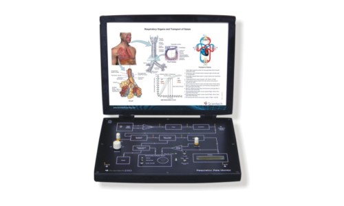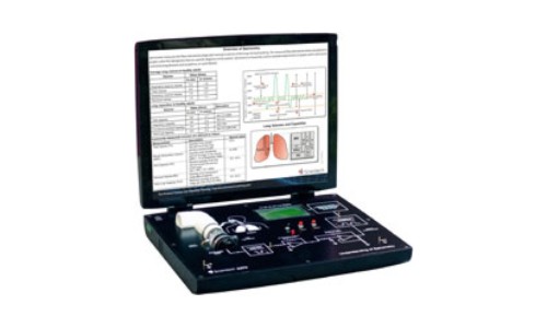 Similarly, Scientech TechBook 2370 Understanding of Spirometry shows different parameters like Tidal Volume (TV), Total Lung Capacity (TLC), Minute Volume (MV), Alveolar Volume (AV) and Residual Volume (RV) on display screen. The graph of flow rate Vs volume and volume Vs time can also be seen on the display screen. A Spirometer is used to conduct a set of medical tests that are designed to identify and quantify defects and abnormalities of various lung conditions in human respiratory system. These tests also help in monitoring the response of lungs to medical treatment.