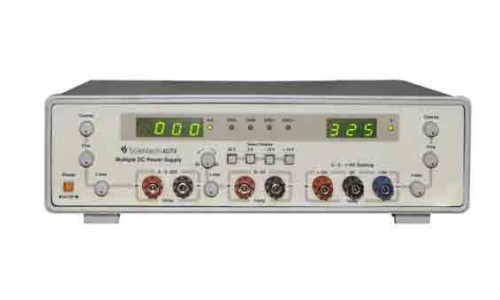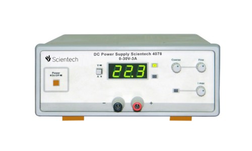 Power Supply is the most indispensable component of any electronic laboratory. A reliable, most accurate, fully specified, guaranteed and an efficient Power Supply Equipment are thus manufactured on a large scale by Scientech Technologies which has robust output protection and fault detection capabilities. DC Power Supplies with Different specifications of Voltage and Current are being manufactured for various Applications. The DC power supply converts the conventional 110 V or 220 V alternating voltage into continuous pulsating DC voltage (+3.3 V, +5 V, +12 V and -12V) used by various electronic components. A DC Power Supply also regulates the voltage to eliminate spikes and surges common in most electrical systems.