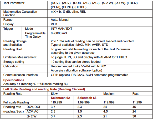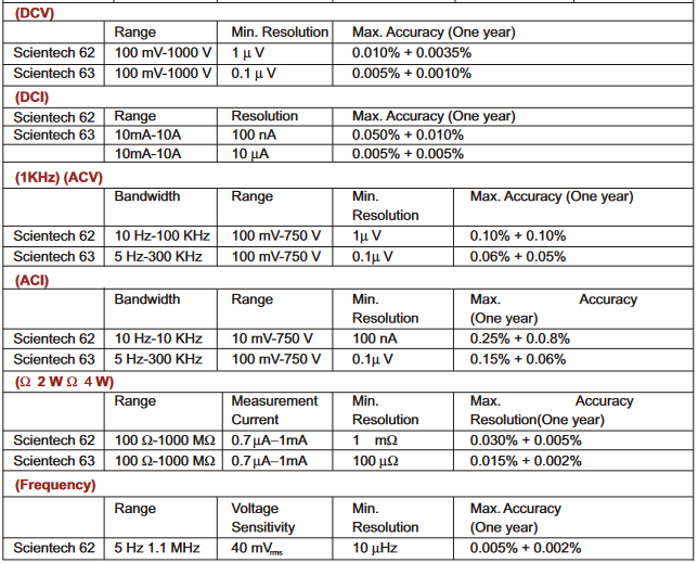 The Scientech 62 are 5 digit high speed, high accuracy, Digital Bench Top Multimeters that meet the measurement needs of voltage-current and resistor accurate measurements. Their outstanding performances, such as fast reading rates (Max. 45 Readings/Second) and DC voltage measurement accuracy up to 0.005% provide a high standard in your work bench.