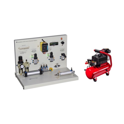 A Pneumatic system is a system that uses compressed air to transmit and control energy. Scientech 2470L Electro Pneumatic Platform is designed to demonstrate the design, construction and application of pneumatic components and circuits. It integrates PLC technology to build Hybrid Industrial automation systems with pneumatic components and modules.