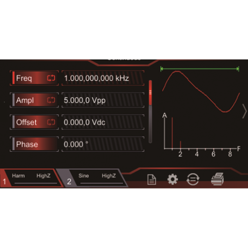 DG2000 has built-in 8-th harmonic generator function and outputs harmonics with specified times, amplitude and phase. It is usually used in the test of harmonic detection equipment or harmonic filter equipment.