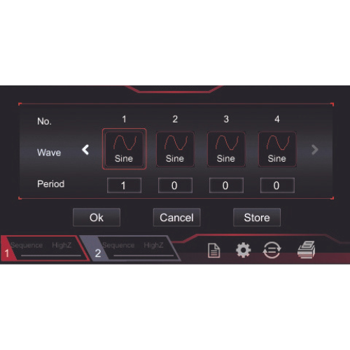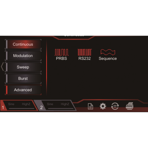 Create and combine complex signal sequences, simulate or analyze faults through finger touch. A wide range of test signals are simulated by combining different waveform types, including dual tone, arbitrary wave and noise DG2000 also has the function of generating RS232 sequence and PRBS, which can be used in test sequence of advanced application.