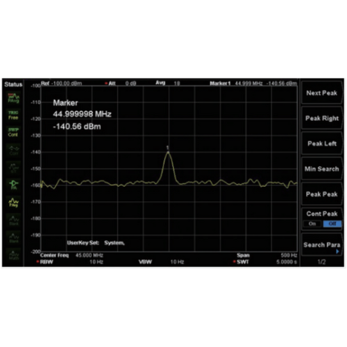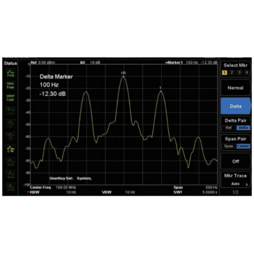 The DSA800 withl RF technology to provide a resolution bandwidth as low as 10 Hz, which can effectively distinguish adjacent equal-amplitude signals and improve signal discrimination.