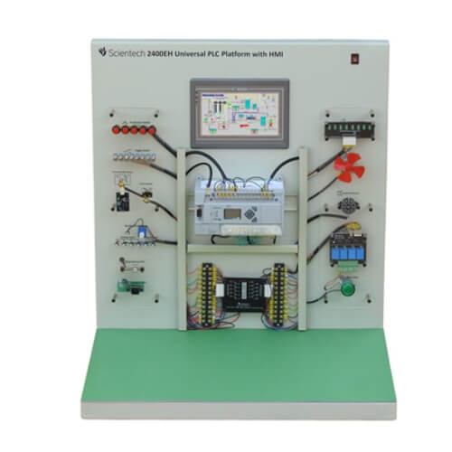 PLC and HMI have adapted well in modern Industry 4.0 manufacturing, automation systems and their programming will continue to play an integral role in the manufacturing processes. Further, the integrated HMIPLC is enabling lean automation-boosting efficiencies and reducing waste, both in terms of equipment and time. Looking at career opportunities offered by Industry 4.0, Scientech has designed a Universal PLC platform with HMI and Allen Bradley PLC. Scientech 2400EH is an ideal setup to study the working of PLC and HMI used for industrial applications. It has been designed to learn and practice:
