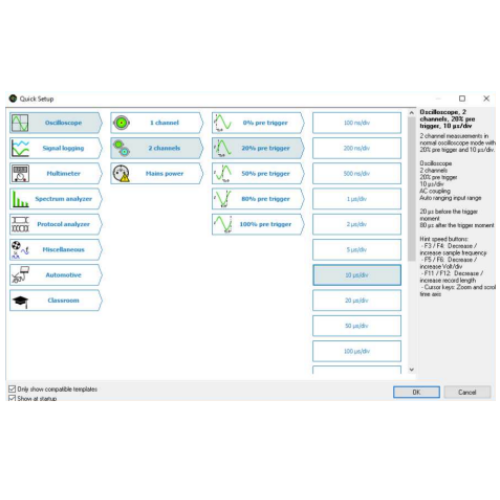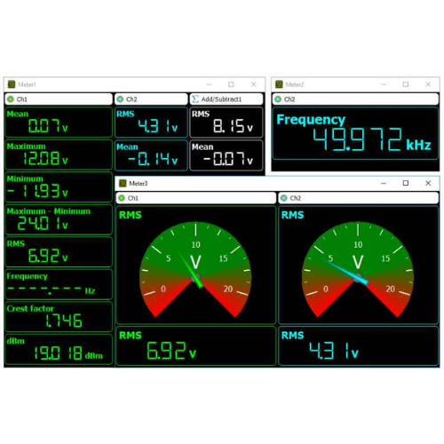 Some of the powerful features of the multi channel oscilloscope software are indicated below, for a full description of